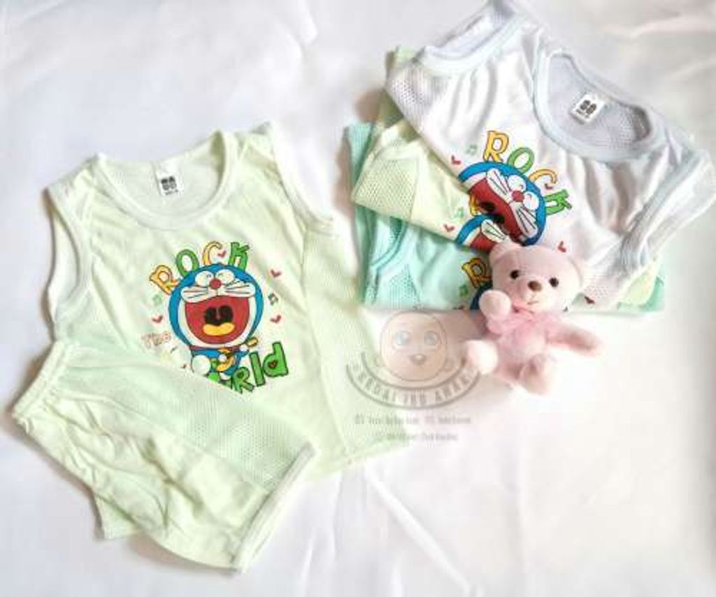 Baby Eyelet Singlet Unisex Cartoon Design - GREEN