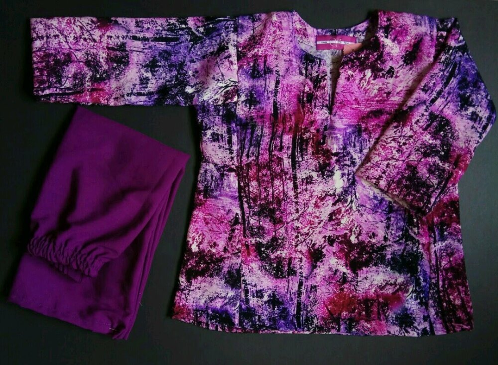 Girl Baju Kurung Pahang M size Flora Design Purple Color for 2 -3 years old Girl